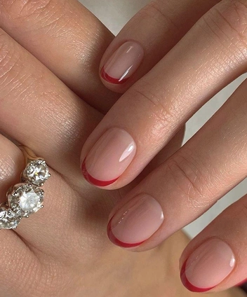 Минималистичный вариант для тех, кто отдает предпочтение нюдовому маникюру. Сочетание френча в красном исполнении выглядит необычно и подойдет к любому образу. Для тех, кто не хочет выбирать между двумя вариантами вечной классики, можно комбинировать обычный красный монохром с френчем на паре пальчиков. Еще один вариант — дополнить френч минималистичными рисунками и узорами в тон.