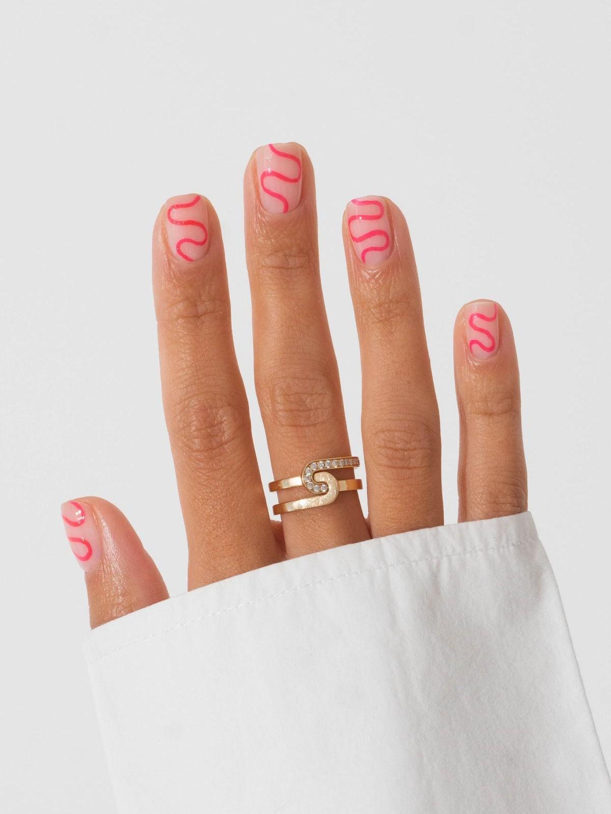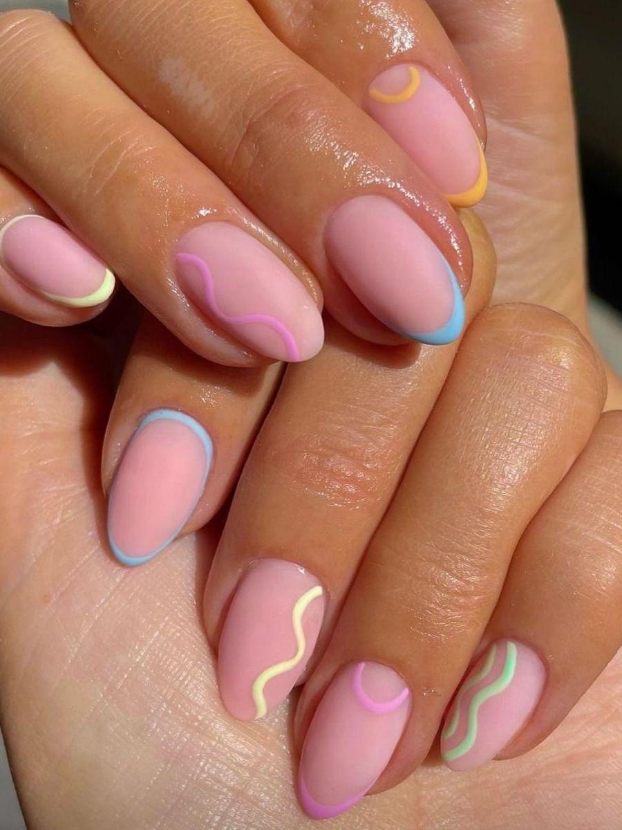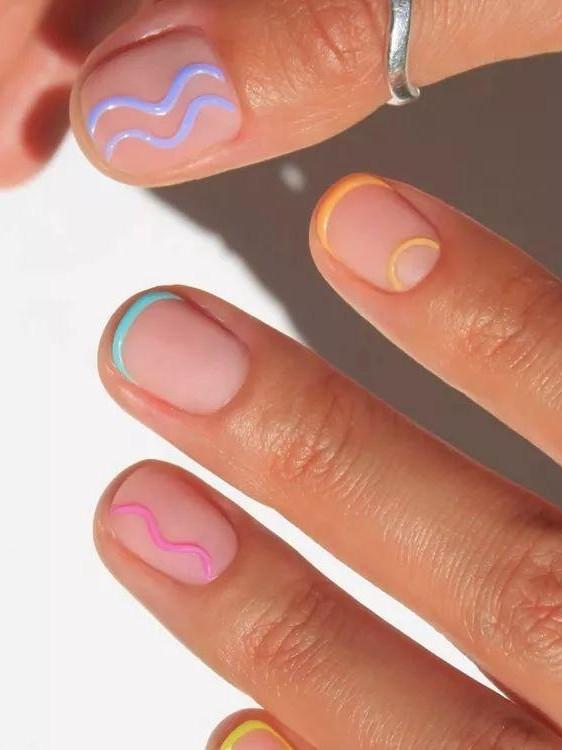 21 марта, суббота — благоприятный день. Фон становится более четким и структурным. Денежный маникюр на март 2026 хорошо делать с разноцветными линиями, но в сдержанной палитре. Линии должны быть тонкими и продуманными — именно такой дизайн поддерживает ощущение движения без хаоса.