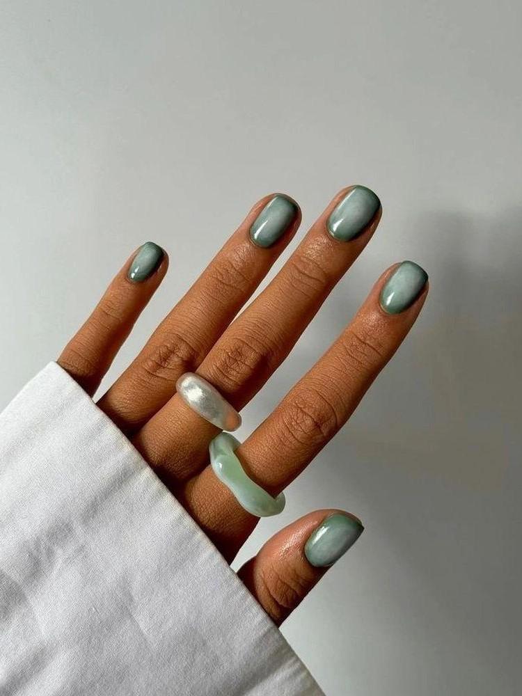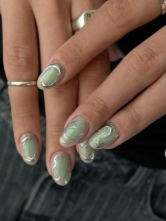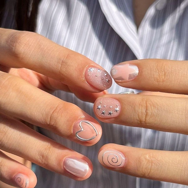 Металлический блеск возвращается, но уже без вычурности. Здесь важно дозировать сияние — как легкий штрих света на коже. Серебро может появляться у кутикулы, в виде тонкой линии или маленькой точки, добавляя ощущение чистоты. Особенно эффектно оно смотрится на холодных нюдах, прозрачных и молочных оттенках. Такой денежный маникюр на март 2026 выглядит современно, но не празднично, что делает его идеальным для офиса и городского ритма (читайте также: Все у вас в голове: популярная психосоматика (и как себя лечить)).