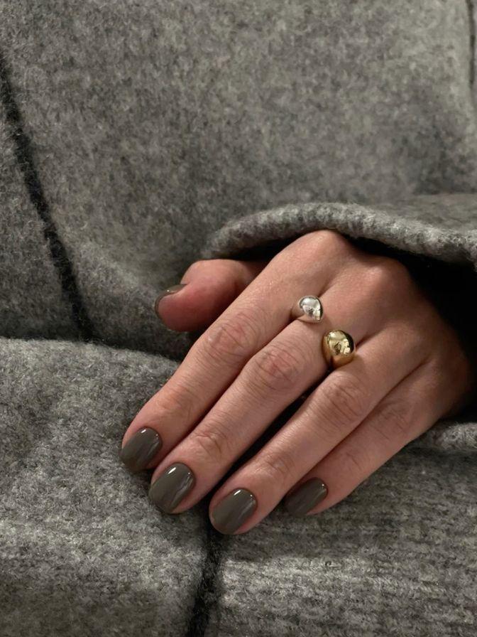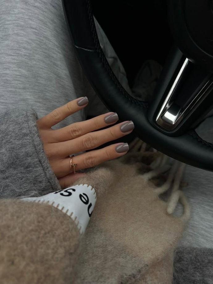 Глубокий, ровный, как полированный камень, графитовый цвет выглядит собранно и уверенно. Это хорошая альтернатива черному, если хочется выразительности, но без жесткости. Он гармонично сочетается с серебряными деталями, матовым или мягким глянцевым покрытием — в зависимости от того, насколько сильного акцента вы хотите. В таком исполнении денежный маникюр на март 2026 будто подчеркивает внутреннюю концентрацию и стремление к контролю, не теряя при этом мягкости.