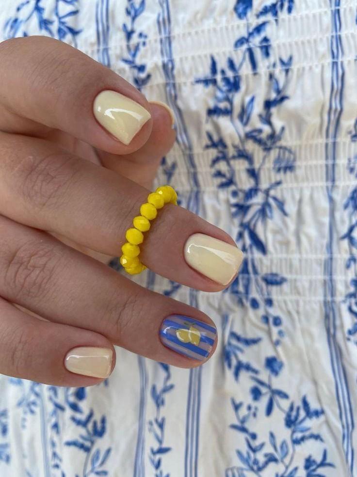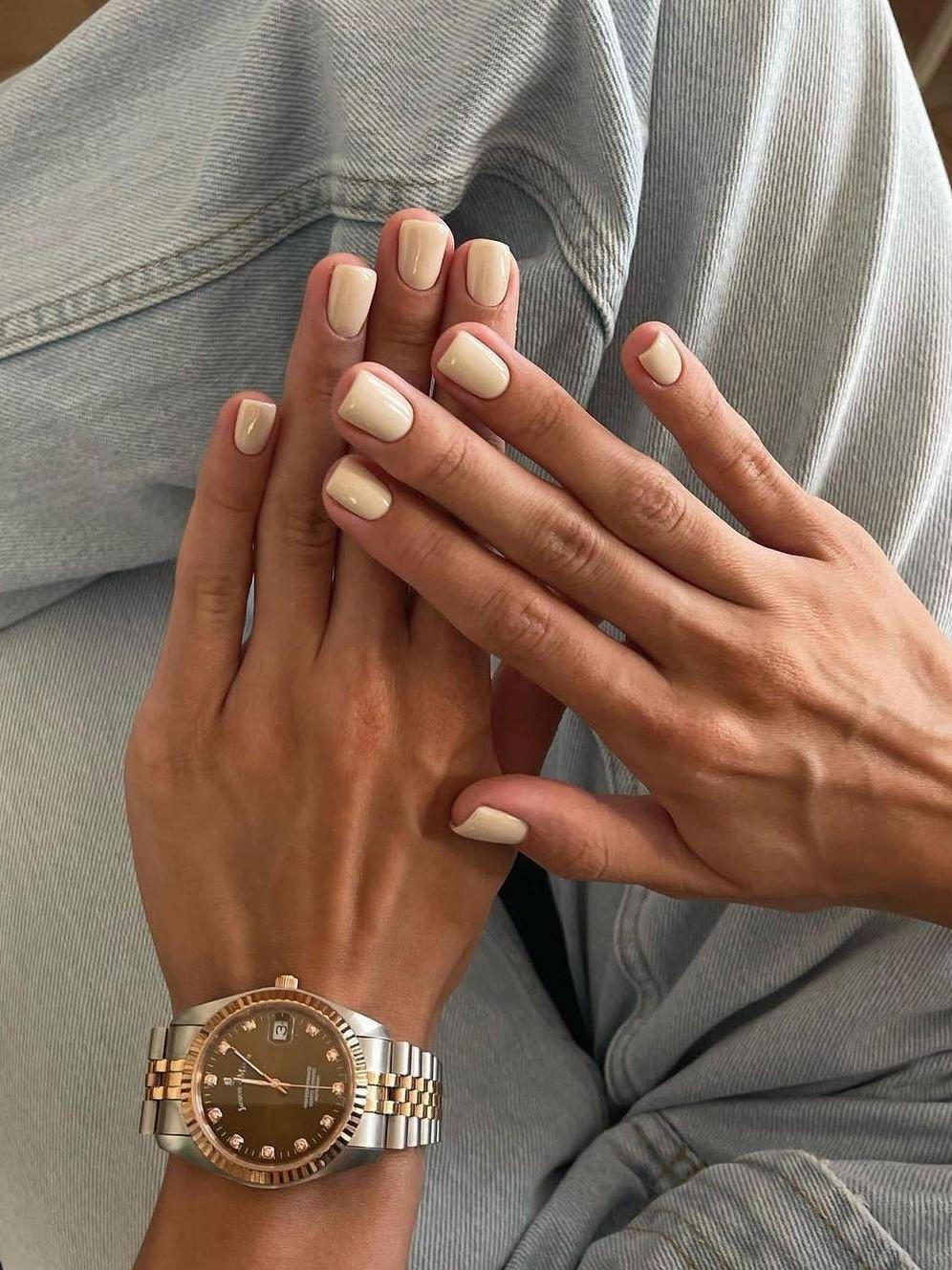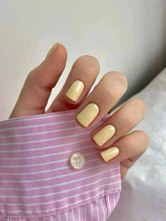 Мягкий желтый без намека на кричащую яркость — главный тон этого месяца. Он теплый, спокойный и немного сливочный, будто солнечный фильтр в пасмурный день. Банановый оттенок делает кожу рук светлее и свежее, особенно на коротких ногтях с природной формой. В таком решении денежный маникюр на март 2026 приобретает мягкую жизнерадостность без показного настроения — просто комфортный цвет на каждый день.