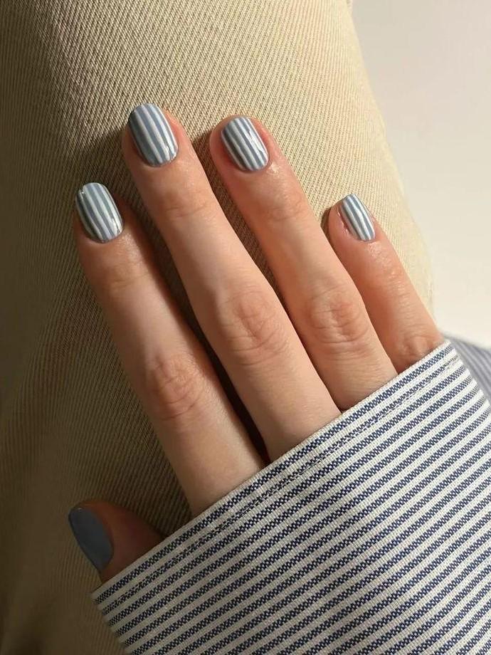 Идея этого дизайна строится на движении и ритме: линии будто собирают ноготь, делают его цельным и аккуратным. Главное — не перегружать цвет, а выстраивать оттенки рядом. Тонкие полосы в молочно-бежевой, оливковой или сероватой гамме создают аккуратную геометрию, которая не утомляет взгляд. Такой подход особенно уместен, если вы ищете баланс между простотой и выразительностью: денежный маникюр на март 2026 с разноцветными линиями выглядит свежо, но остается спокойным, органично вписываясь в повседневный гардероб.
