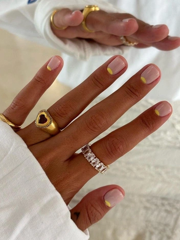 Нюдовый маникюр давно стал классикой, но именно на коротких ногтях с легким цветным акцентом он раскрывается максимально. Это может быть тонкая полоска, яркая точка или минималистичный геометрический элемент. (читайте также: 7 реальных причин усталости, которые не решаются сном и отпуском)