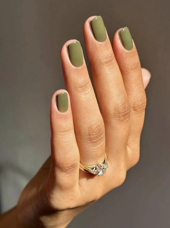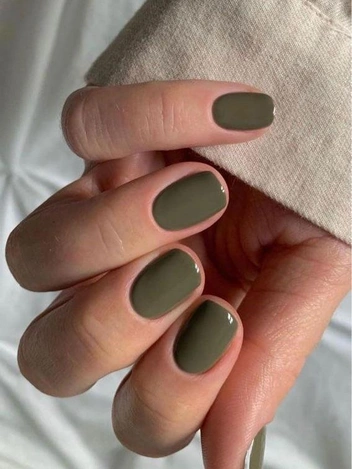 Оттенки можно варьировать — от глубокого оливкового до приглушенного болотного. Такой денежный маникюр хорошо смотрится в офисе и подходит для деловых встреч, где важна надежность. В повседневности хаки сочетается с джинсами, шерстяными пальто и осенними аксессуарами.