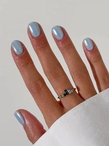 Однотонная втирка с легким сиянием — это акцент на ухоженность и женственность. Шиммер отражает свет, создавая ощущение законченности и «праздничности». Денежный маникюр на октябрь 2025 в таком стиле подходит для вечеров, свиданий и торжественных событий. Оттенок можно выбрать от холодного серебристого до теплого золотого. Такой дизайн помогает настроиться на привлечение финансовой энергии и создает ощущение внутреннего света.