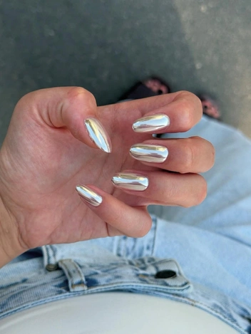 Денежный маникюр на сентябрь 2025 сработает на уровне энергетики идеально, если вы выберите оттенки серебра. Оно усиливает интуицию, делает ум яснее, помогает видеть скрытые возможности. Серебряная втирка будет особенно актуальна в начале осени: она не только выглядит футуристично, но и буквально «высвечивает» ваш потенциал. С точки зрения символизма это «денежное зеркало»: вы притягиваете то, что транслируете.