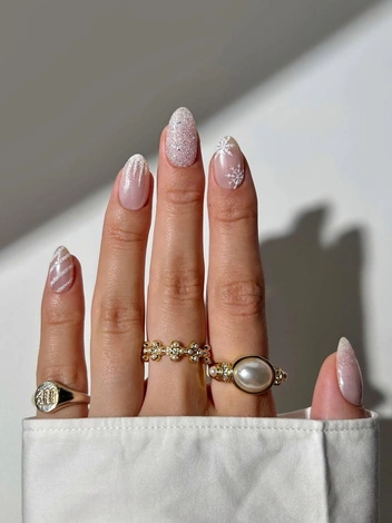 Какой может быть зима без снежного маникюра? Кажется, январь — идеальный месяц для того, чтобы успеть примерить на свои ноготки россыпь из снежинок и ледяных кристаллов. Вдохновленный чарующей красотой зимней природы, такой маникюр переносит на ногти атмосферу сказки про Снежную королеву. Легкие рифления и нежные оттенки белого, голубого и серебристого создают эффект замерзшей воды, щедро присыпанной снегом. Чтобы дополнить маникюр, можно использовать матовые топы или глиттер, которые добавят дополнительный блеск и глубину в общую картину.