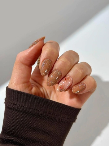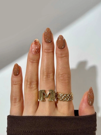 Оттенок капучино, нежно перетекающий от светло-коричневого до кремового, олицетворяет элегантность и утонченность, добавляя ощущение уюта и тепла в любой зимний образ. Беспроигрышным вариантом станет однотонное глянцевое или матовое покрытие. А для разнообразия привычного дизайна попробуйте растянуть цветовую гамму по всей ногтевой пластине от белого до шоколадного (читайте также: Маникюр невесты: 10 свадебных трендов 2025 года).