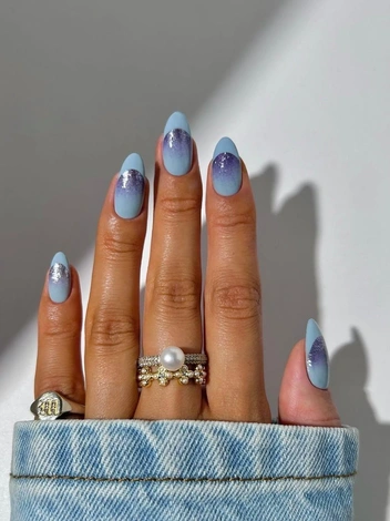 Металлические оттенки серебра могут варьироваться от нежных пастельных тонов до яркого блеска, создавая множество уникальных эффектов. Дополните ногти искрящимися стразами или однотонными дизайнами, чтобы сделать маникюр ярким акцентом для любого образа (даже самого строгого и классического).