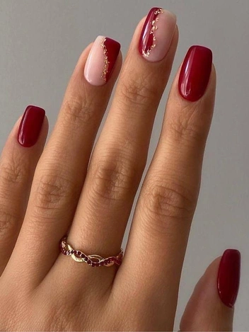 Бордовый цвет — глубокий, насыщенный и благородный. Он ассоциируется с стабильностью и достатком. В этом оттенке маникюр становится выражением уверенности и серьезности, что важно для начала года, когда многие строят планы и настраиваются на успех. Такой цвет не отвлекает, но при этом сохраняет эффектную тонкость. Денежный маникюр на январь 2026 с бордовыми ногтями будет отлично смотреться в деловой и повседневной атмосфере, привлекая внимание к аккуратности и стилю (читайте также: Сделают вас моложе: 5 лучших оттенков помад для женщин старше 40 лет).
