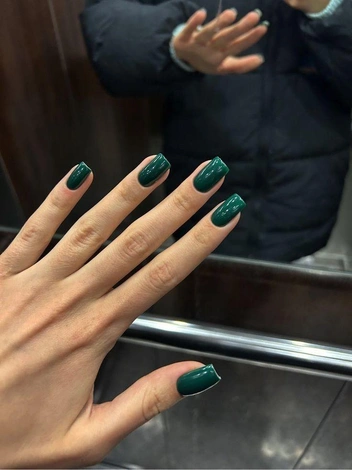 Этот насыщенный и глубокий зеленый цвет — классика денежной тематики. Денежный маникюр на январь 2026 с изумрудным оттенком ассоциируется с роскошью и устойчивым успехом. Он придает образу солидность и изысканность, усиливая ощущение благополучия. Идеально подходит для тех, кто хочет подчеркнуть свою уверенность и серьезное отношение к финансовым целям.