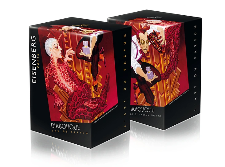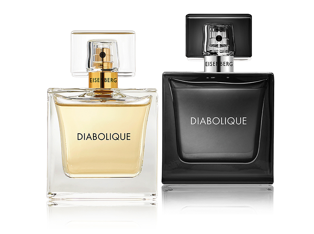 Diabolique for Her / Diabolique for Him, Eisenberg. Парфюмерный Дом Eisenberg в 2010 году выпустил сразу несколько парных ароматов, объединенных общей концепцией дизайна как флаконов, так и коробочек для них – настолько красочных, что мукой будет попытка выбросить их после вскрытия. Но главная особенность этих пар – их условная гендерная классификация. Фишка пар в том, что в них используются одни и те же ноты, но миксуются так, что один оказывается плотнее и брутальнее, второй – легче, женственнее. Тем не менее, неискушенному человеку затруднительно будет с закрытыми глазами определить, какой флакон «для него», а какой «для нее». Еще сложнее будет удержаться от соблазна время от времени пользоваться «его» версией аромата. Оба аромата Diabolique играются с нотами ириса, кардамона, ветивера, гелиотропа, сандала, фиалки и мускуса.