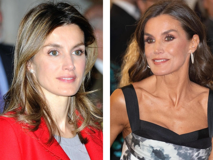 Об изменениях в лице 50-летней королевы можно сказать, что с возрастом его черты стали более резкими, чем раньше. И Летиция предпочитает подчеркивать это коричневыми тенями, темным оттенком волос и частым выбором синих, бордовых, темно-зеленых оттенков одежды. И стоит отметить, что королева удачно смотрится в нарядах любого цвета, а темные оттенки не добавляют ей возраст.