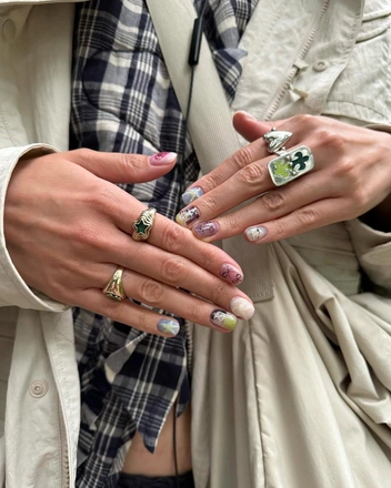 К слову, он может стать эффектным дополнением к вашему гардеробу. Если вы предпочитаете создавать такие наряды, которые хочется подолгу рассматривать, и не боитесь большого количества деталей — «дофаминовые» ногти смогут сделать акцент еще и на ваших руках. А в сочетании с бижутерией, особенно трендовыми крупными браслетами или кольцами, можно составить целую отдельную композицию.