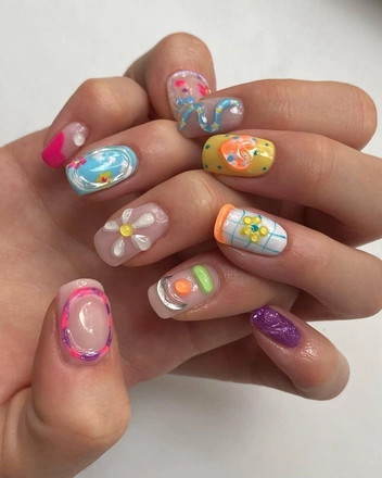 Их прозвали «маникюром хорошего настроения», и все благодаря обилию ярких элементов — насыщенных цветов, блесток, наклеек, рисунков и 3D-фигурок. Нередко подобные ногти делают еще и с обращением к поп-культуре, астрологии или любимым мультфильмам, а значит они могут вызвать положительные эмоции у каждого — в зависимости лишь от того, что нравится именно.