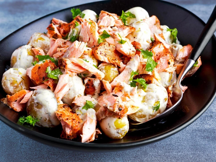 Салат из лосося и картофеля (470 калорий)