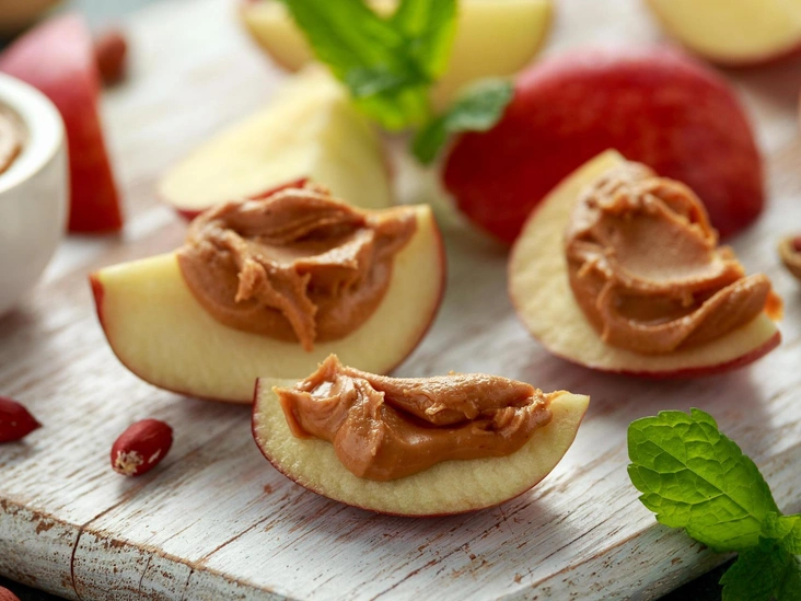 Среднее яблоко с 2 столовыми ложками арахисового масла (283 калории)