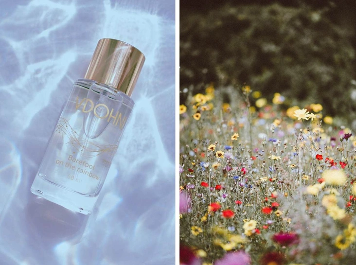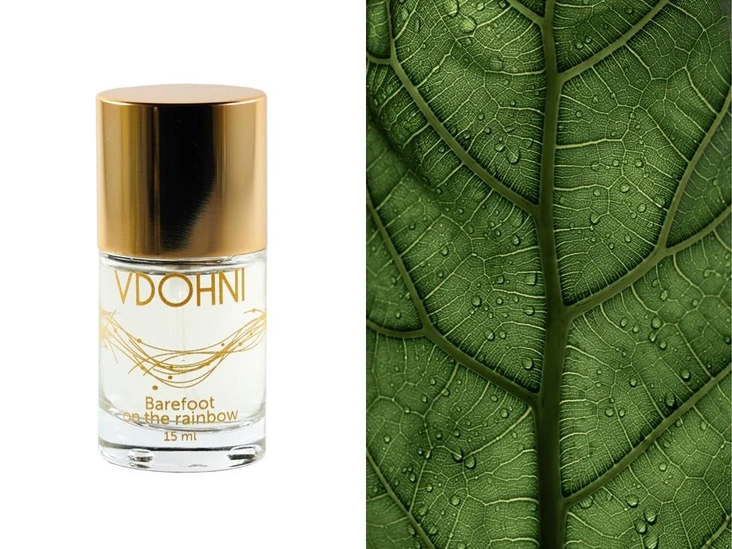 «Босиком по радуге» — чистый, прозрачный, звонкий. Озоновая свежесть после дождя, зелень мокрой травы, ощущение прохладных капель на коже. Композицию с нотами инжирного листа, лайма и полевых цветов будет комфортно носить летом в самую жару с белой рубашкой или сарафаном из льна.