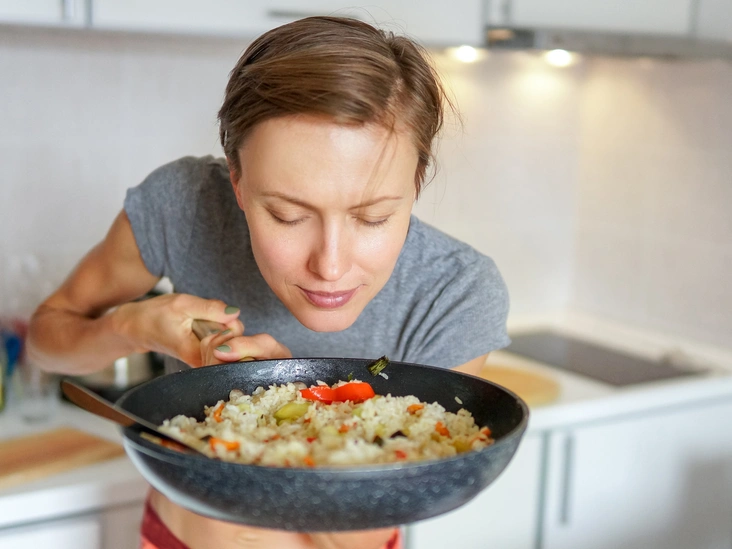 старайтесь есть, не отвлекаясь на чтение или просмотр роликов или фильмов, сосредоточьтесь на вкусе и запахе еды и ешьте медленно — пусть это впечатление будет как можно более полным,