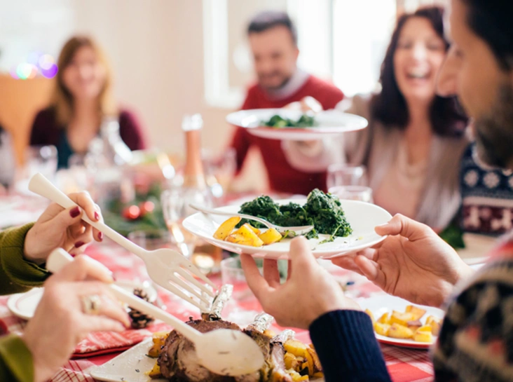 1. Получайте удовольствие от еды. Помните, ваша цель не поглотить как можно больше, но получить удовольствие от съеденного. Старайтесь придерживаться привычного для вас объема порций и не набирайте на тарелку все, на что только упадет взгляд. «Просканируйте» стол и выберите что-то максимально привлекательное лично для вас. Обратите внимание на те блюда, которые вы не можете попробовать в остальное время года. Согласитесь, нет смысла выбирать салат оливье, когда можно попробовать что-то новое.
