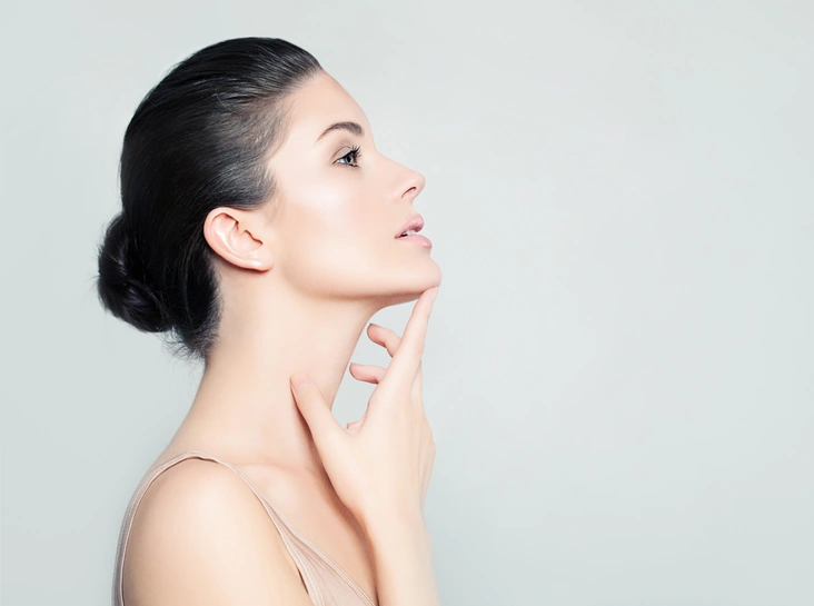 Мягко массируйте овал лица всей поверхностью ладони, чтобы захватить область под и над линией нижней челюсти. Плавно двигайте ладонью от подбородка к уху. Не отрывая руки, продолжайте поглаживать сверху вниз боковую поверхность шеи. Обратите внимание, чтобы не образовывались заломы и складки. Таким образом, «прогладьте» каждую сторону минимум по 10 раз.