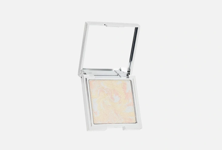 Гелево-пудровая формула этого хайлайтера создает эффект влажной, свежей кожи. Мелкие светоотражающие частицы дают деликатное свечение, без видимых блесток. При нанесении кистью получается мягкий рассеянный свет, пальцами — более плотный и выразительный.
