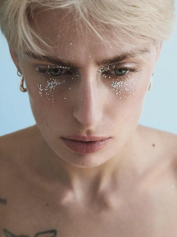 И не забудьте про сияние. Нанесите шиммер, хайлайтер или же тени с блестками. При желании можно нарисовать стрелки белой, серебристой либо синей подводкой. И последнее — тушь. Она может быть как классической черной, так и цветной. Для максимального объема и выразительности взгляда используйте накладные ресницы.