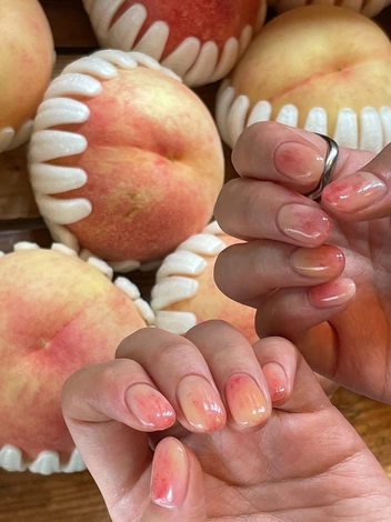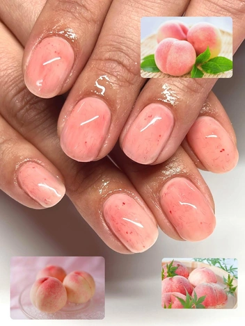 Если же вы предпочитаете делать все самостоятельно и не боитесь экспериментов, то в интернете полно видеоуроков о том, как добиться желаемого результата. Например, чтобы воссоздать текстуру персика на своих ногтях, мастера советуют использовать нюдовую основу, а сверху нанести пятна розового и оранжевого цвета с помощью полусухой губки для градиента.