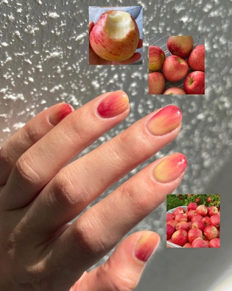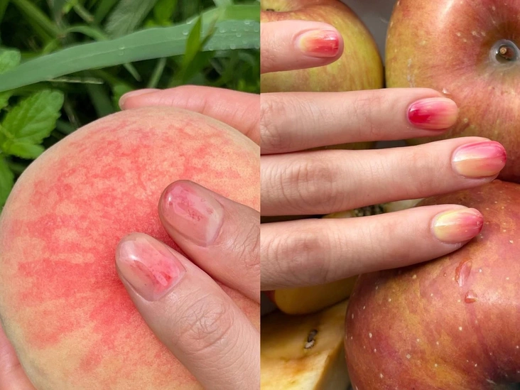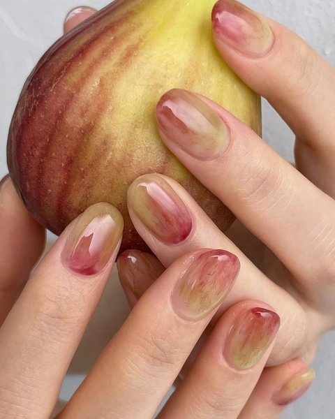 Новый дизайн получил название fruit peel или fruit skin, что в переводе с английского означает «фруктовая кожура». По сути, это гиперреалистичное изображение кожицы любых фруктов или ягод — от простых яблок и винограда до экзотичных гуавы и манго. Первым мастера попробовали воссоздать рисунок персика — именно с него и начался тренд. Однако теперь подойдет любой ваш фаворит, главное — точно изобразить текстуру их разноцветной кожуры на своих ногтях.