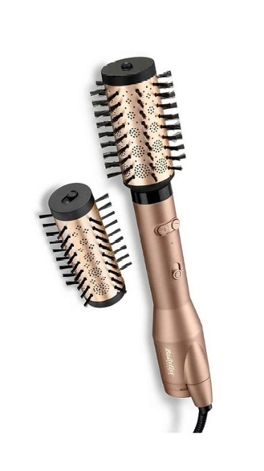 Нанесите защитный спрей на волосы и выпрямите их с помощью фена и круглой щетки.