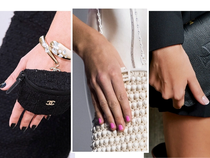 Весной и летом 2021 черная классика скажет свое слово в маникюре: можно пробовать как матовые, так и глянцевые оттенки, а лучшим вариантом станет сочетание черного маникюра с аксессуаром в комплементарном или белом оттенке. Лаконичные и в то же время роскошные варианты с весенне-летних показов Chanel и Fendi — лучшее руководство к действию.