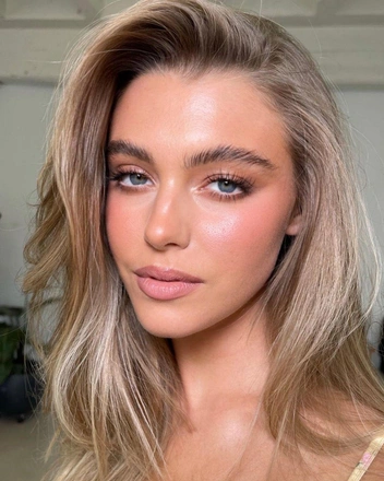 Для повседневных образов макияж тоже подойдет: вместо ярких ягодных и розовых оттенков используйте более приглушенные персиковые или коралловые. А для более деликатного сияния наносите средства с шиммером в составе — блеск от таких румян будет более сдержанным.