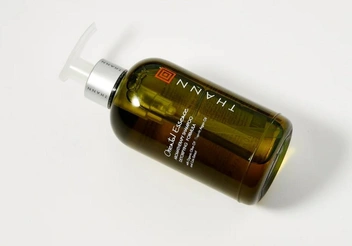 Ароматерапевтический шампунь детокс-формула Oriental Essence от бренда Thann с органическим оливковым маслом, органическим аргановым маслом, экстрактом коикса и маслом рисовых отрубей (читайте также: Тонкие волосы: полный гид по уходу и укладкам)