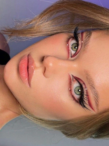 Цветную подводку можно наносить как самостоятельно, так и поверх классической черной. В первом случае получится мягкий эффект, во втором плотная линия с глубиной. Чтобы стрелка не выглядела пестрой, цвет лучше выбирать умеренный, без блесток. Если хочется легкого акцента, достаточно нанести цветную подводку только на кончик стрелки или на нижнюю линию ресниц.