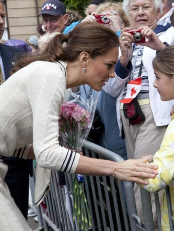 Низкий хвост — удачный вариант укладки для случаев, когда не нужно выглядеть слишком торжественно или формально и не требуется чрезмерного объема волос. Сделать его элегантным королевским особам помогает легкий начес в прикорневой зоне и то, что один из локонов закрывает заколку, будучи обернутым вокруг нее. Этим приемом пользовались обе королевские невестки: Кейт — в 2011 году во время турне по Канаде, Меган — в 2018 во время посещения лондонской Hubb Community Kitchen.