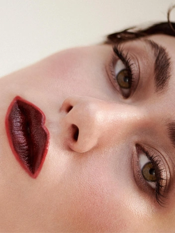 Глубокая помада с холодным подтоном (бордовые, фиолетовые или темно-красные оттенки).