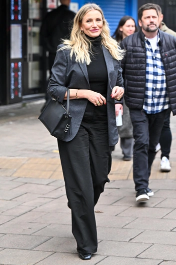 Сейчас актриса активно продвигает фильм «Снова в деле». В пятницу, 17 января ее заметили в Лондоне, когда она выходила со съемок Heart Breakfast Show. Звезда была одета в черную водолазку и брюки, а также в серый блейзер. Двумя днями ранее, на берлинской премьере новой картины, звезда появилась в похожем аутфите: черных джинсах, полупрозрачном топе с высоким горлом и оверсайз-жакете.