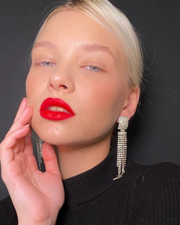Выбирая красную помаду мы, в первую очередь, опираемся на оттенок кожи. И для светлокожих девушек со светлыми волосами и глазами подходит более холодный оттенок красной помады. Это помогает создать нужную контрастность между цветами кожи и помады. Также он не должен быть слишком интенсивным или темный. Ведь наша цель — подчеркнуть фарфоровый оттенок кожи, но не перетягивать все внимание на себя.