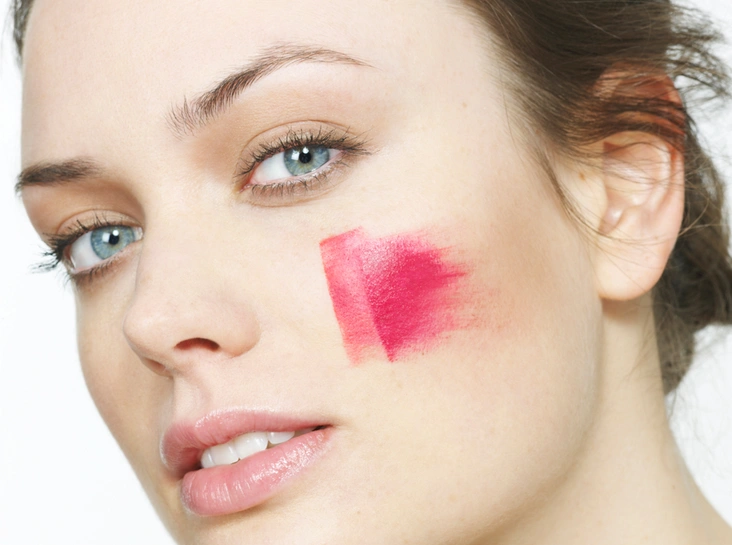Когда покраснения нельзя убрать, их можно спрятать. Здесь нужно помнить, что розовые и персиковые тона только усугубляют ситуацию. Ориентируйтесь на оттенок кожи на шее — именно «по нему» нужно подбирать тональное средство. Беспокоят локальные покраснения? Можно обойтись корректором желтоватого и немного землистого оттенка (но без розового пигмента в составе!). Если вы не мыслите жизни без пудры, наносите ее на кожу кистью или пуховкой легкими похлопывающими, а не растягивающими движениями.
