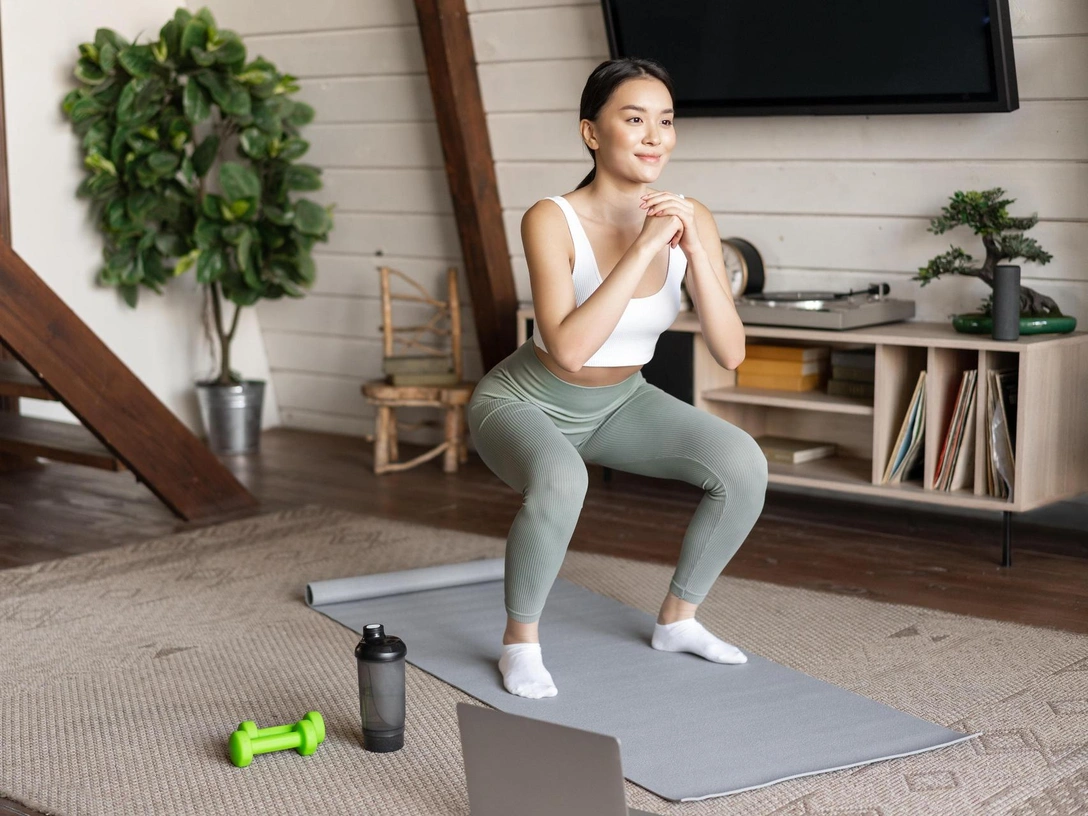 Встаньте прямо, ноги на ширине плеч, слегка согнуты в коленных суставах. На вдохе опускайтесь вниз, таз чуть выше колена, сохраняя естественный прогиб в пояснице, соберите руки перед собой в замок. На вдохе поднимайтесь вверх, толкая себя от пола, вес тела на пятках. Важно: сохраняйте правильную осанку, позвоночник в нейтральном положении, пресс напряжен. Сделайте 20 раз по 2 подхода.