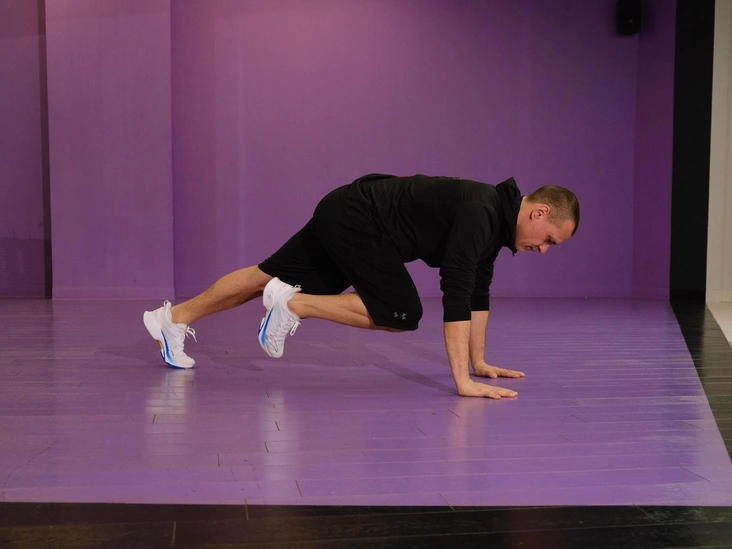 Исходное положение — планка, ладони под плечевыми суставами, колени расслаблены, позвоночник в горизонтальной плоскости. В медленном темпе, поочередно, сгибаем бедра, подтягивая их к животу. Стремимся выполнять движение с максимальным напряжением пресса, чтобы поясница слегка округлялась. Делаем в течение 1–2 минут, дышим медленно и глубоко.
