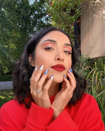 Индийский макияж — уникальное явление в бьюти-индустрии, которому может составить конкуренцию не каждый подиумный образ. Отличительной особенностью является бинди — яркая точка между бровей. Изначально этот элемент макияжа наносили только незамужние девушки, но сегодня бинди отведена больше декоративная функция. Индуски не боятся ярких цветов и четких линий. Брови всегда прорисованы и выделены будто по трафарету, а тени нанесены от нижней части века до начала брови для визуального увеличения глаз. Получается своеобразный смоки айс на каждый день.