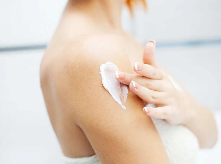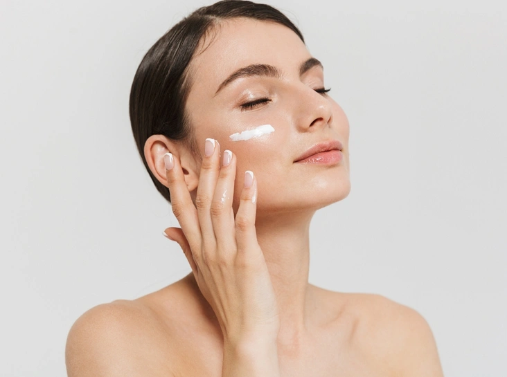Наносите крем по массажным линиям, не растягивая кожу, сочетая с легким массажем. Так, темные круги под глазами поможет устранить крем для зоны вокруг глаз с охлаждающим аппликатором в сочетании с лимфодренажной техникой нанесения. Повысить упругость кожи и придать здоровый румянец за счет улучшения микроциркуляции поможет легкий массаж щипковой техникой от центра к периферии.