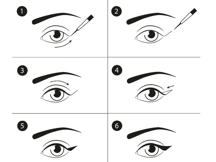 Теперь от внутреннего уголка глаза проведите линию к внешнему — она должна постепенно расширяться и соединиться с хвостиком стрелки.
