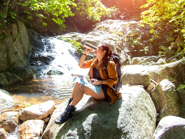 Поддержание водного баланса не только улучшает самочувствие и положительно влияет на состояние кожи, но и способствует улучшению обмена веществ. Не выходите из отеля без бутылки чистой питьевой воды и по возможности постоянно пополняйте ее запасы. Особенно это важно, если вы отдыхаете в жаркой стране. Также важно не забывать пить достаточно воды во время употребления алкоголя — это ослабит неприятные симптомы интоксикации на утро и уберет отеки.