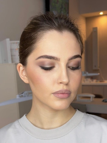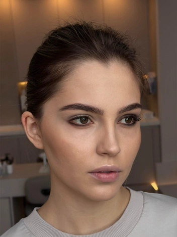 Это та самая деталь, которая формирует образ и взгляд — итальянки уделяют им большое внимание. Нам нужно добиться выразительных бровей, и при этом сохранить эффект естественности. Сначала подчеркиваем брови карандашом или тенями. Только после этого берем бронзер холодного подтона и выделяем скулы, подбородок для создания объема и глубины.