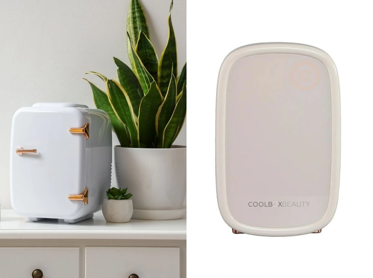 В стильном мини-холодильнике с подсветкой и дисплеем на дверце разместились две полки и выдвижной ящик. Внутри устройство поддерживает постоянную температуру в 10 С. Работает практически бесшумно и не доставляет неудобств при транспортировке благодаря компактному размеру.