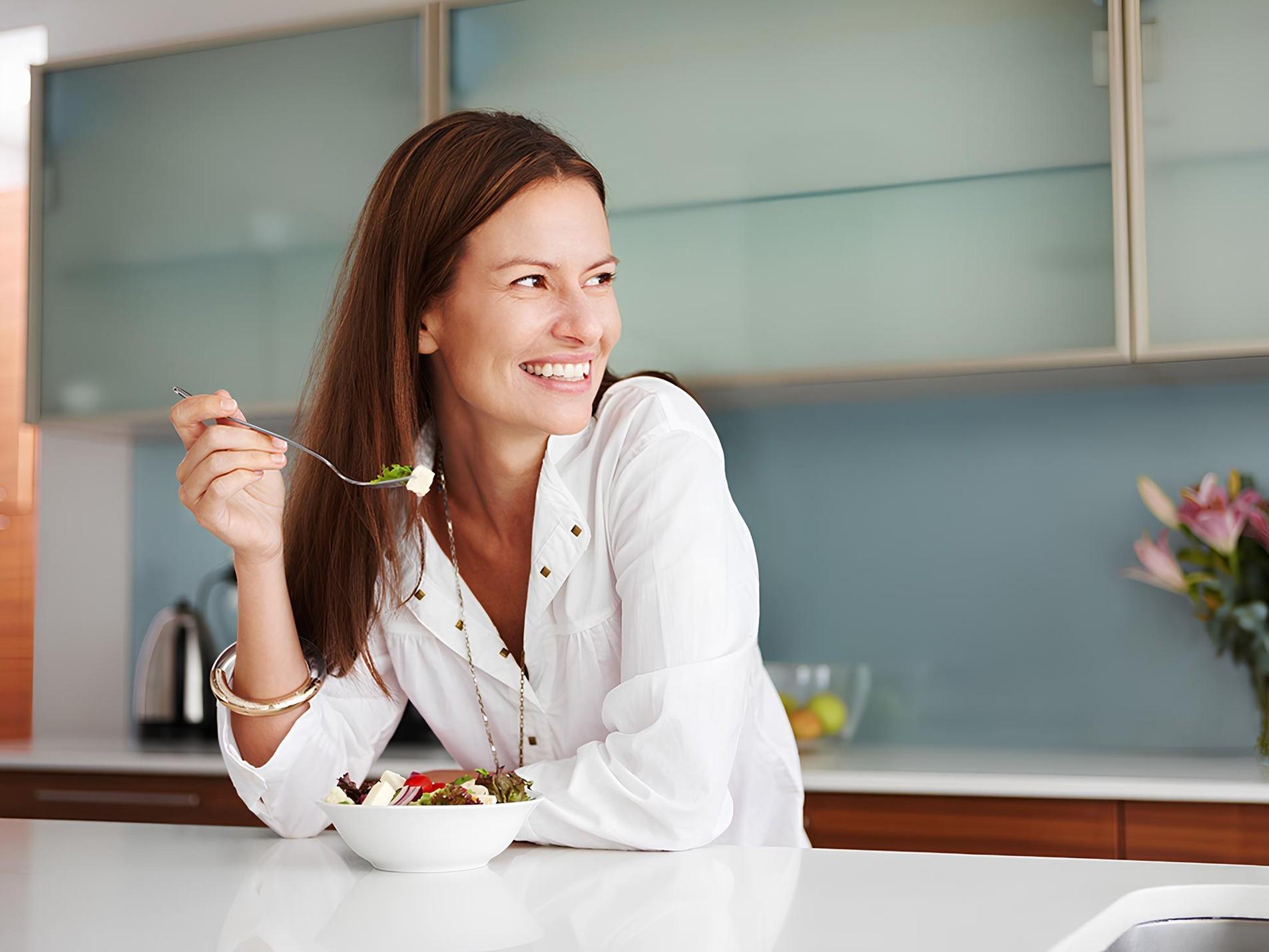 Тем, кто питается дважды в день, я бы советовал увеличить количество приемов пищи до трех. В остальное время просто правильно перекусывайте. Лучше — продуктами с высоким содержанием нитратов (например, сельдереем, шпинатом, свеклой) и антиоксидантов (вишня, черника). Эти элементы замедляют старение и улучшают кровяное давление.