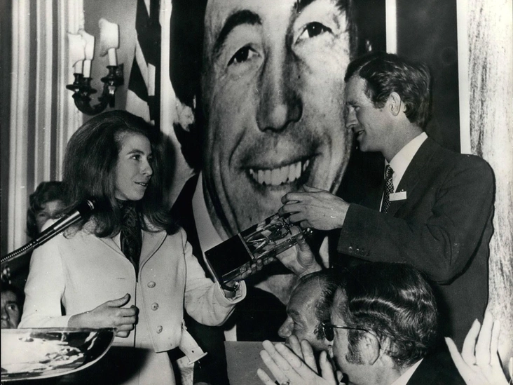 Тот день запомнила вся Великобритания: после безрезультатных соревнований на Олимпиаде в Мюнхене, британская сборная по конному спорту наконец смогла завоевать золотые медали. Конечно, их главной болельщицей была королевская принцесса, которая на фотографии поздравляет членов команды с победой.