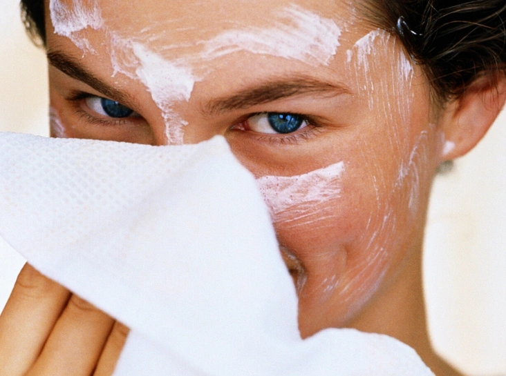 Начнем с ухода. Перед тем, как перейти к созданию основательного бьюти-образа, лучше всего принять освежающий душ, но если времени на это совсем нет, сразу переходим к мягкому очищению кожи. Для этого пользуемся средством на масляной основе, которое быстро удалит жир и грязевые частицы с поверхности лица. Затем умываемся слегка теплой водой и высушиваем кожу специальной салфеткой.